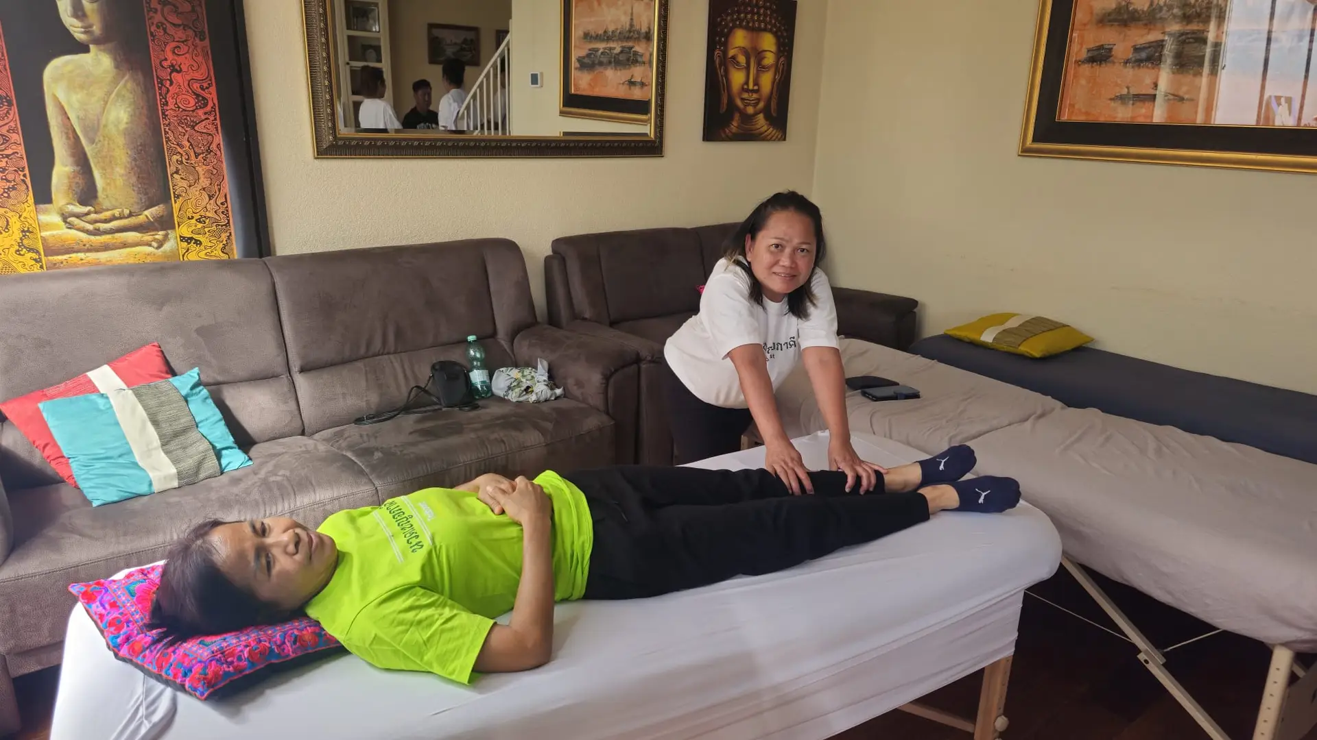 Auf Wunsch Thai Rod Sen Massage mit Öl.